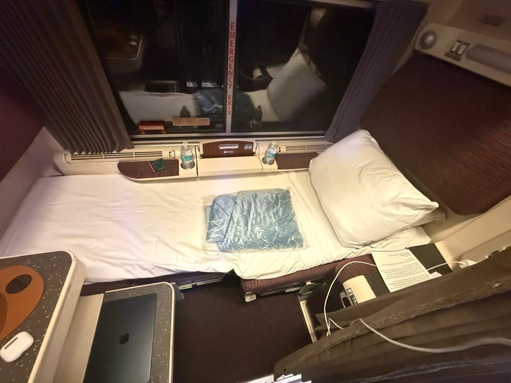 The process was simple. I arrived at West Palm Beach station, found the Amtrak office, and alerted them to my presence. As a roomette occupier, I would board further down the platform than everyone else. As the train pulled in, my brand new iPhone 16 Pro Max decided to crash (it does that a lot, by the way), leaving me having to assure the ticket inspector that this was, in fact, my train and that I would show him my ticket once Apple got its shit together – an intentionally vague pledge.