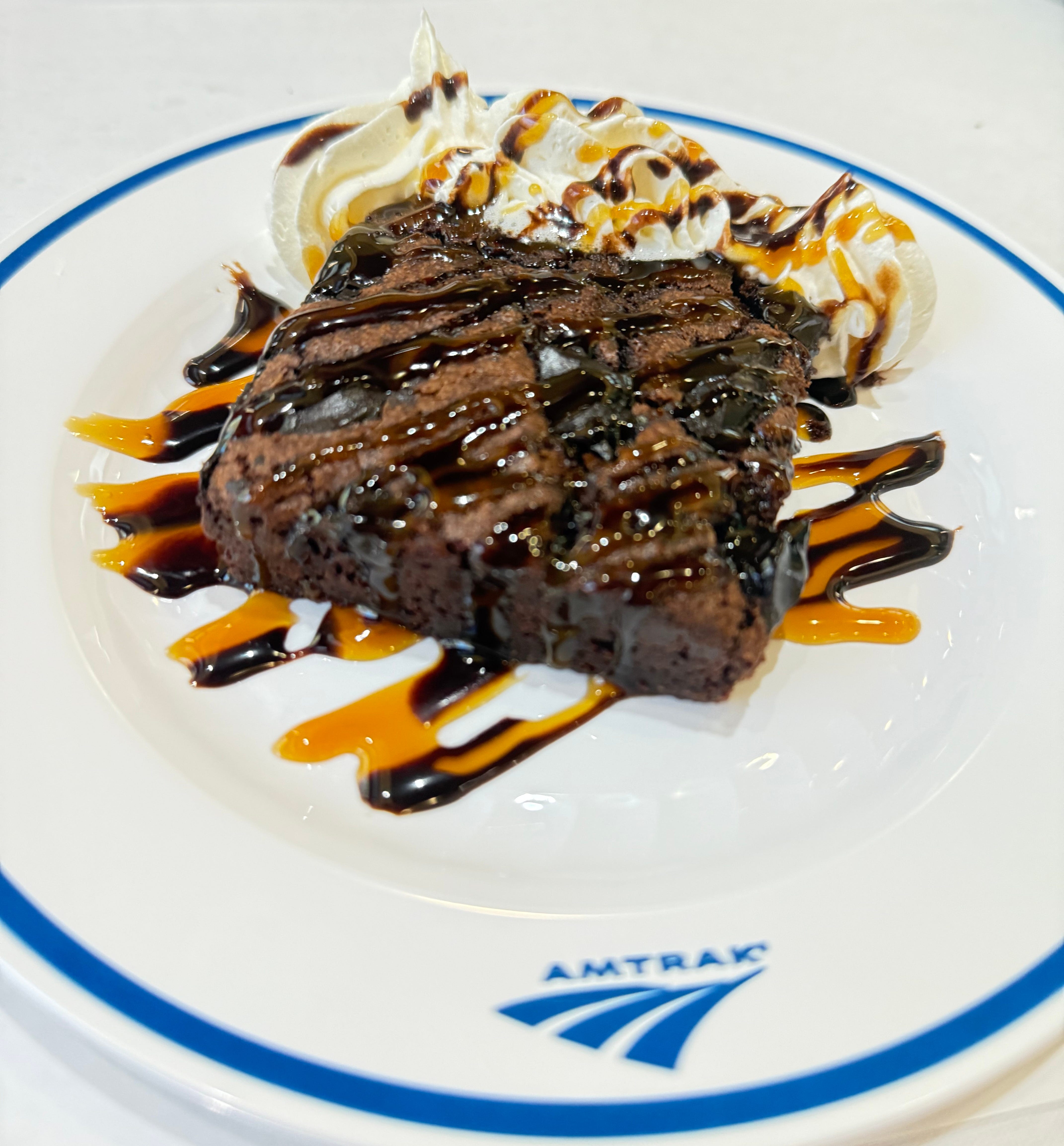 Brad’s dead father made him promise not to ever drive, use a computer, or use the internet. So he never has. He travels via bus and train and was a self-described favorite of the drivers back home in Oxnard, California. Brad recently moved in with a friend of his (Brad bought a house for them both) in Albuquerque, New Mexico. He said his friend traveled with him, but there was no sign of anyone else. His room was on the way to mine, and I spied an old Sony Walkman on the seat. That was all he could use to entertain himself. Brad says his eyesight isn’t very good anymore, so I helped him determine the mustard from the hot sauce for his burger, which he curiously devoured by nibbling in concentric circles. I had a grilled cheese, the worst of all the food I had tried so far. Soggy, ham-less, and uninspired, it had all the personality of the waitress who slapped it down in front of me. The dessert brownie, on the other hand, was another delightful but likely wildly unhealthy treat.