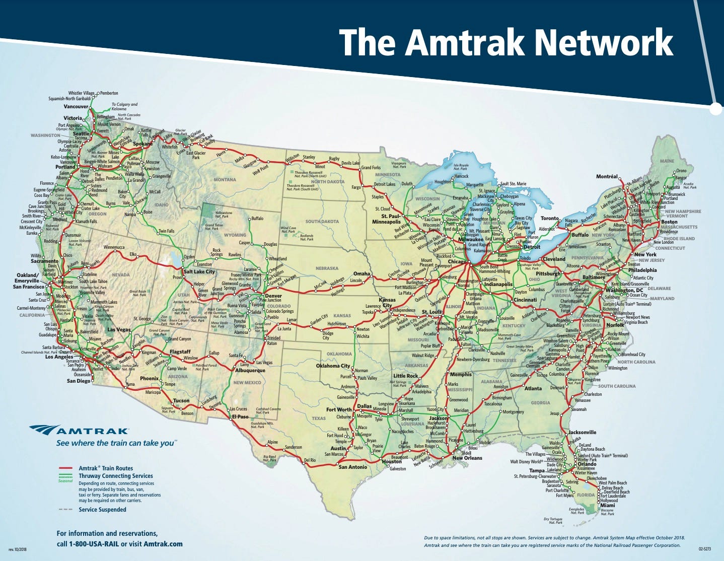 But this is America, where Big Plane has lobbied against expanding and maintaining the nation’s creaking rail network. The national Amtrak map is limited in its reach and basic in its amenities, though private firms like Brightline are managing to add layers like Miami to Orlando or, by 2028, Las Vegas to Los Angeles.