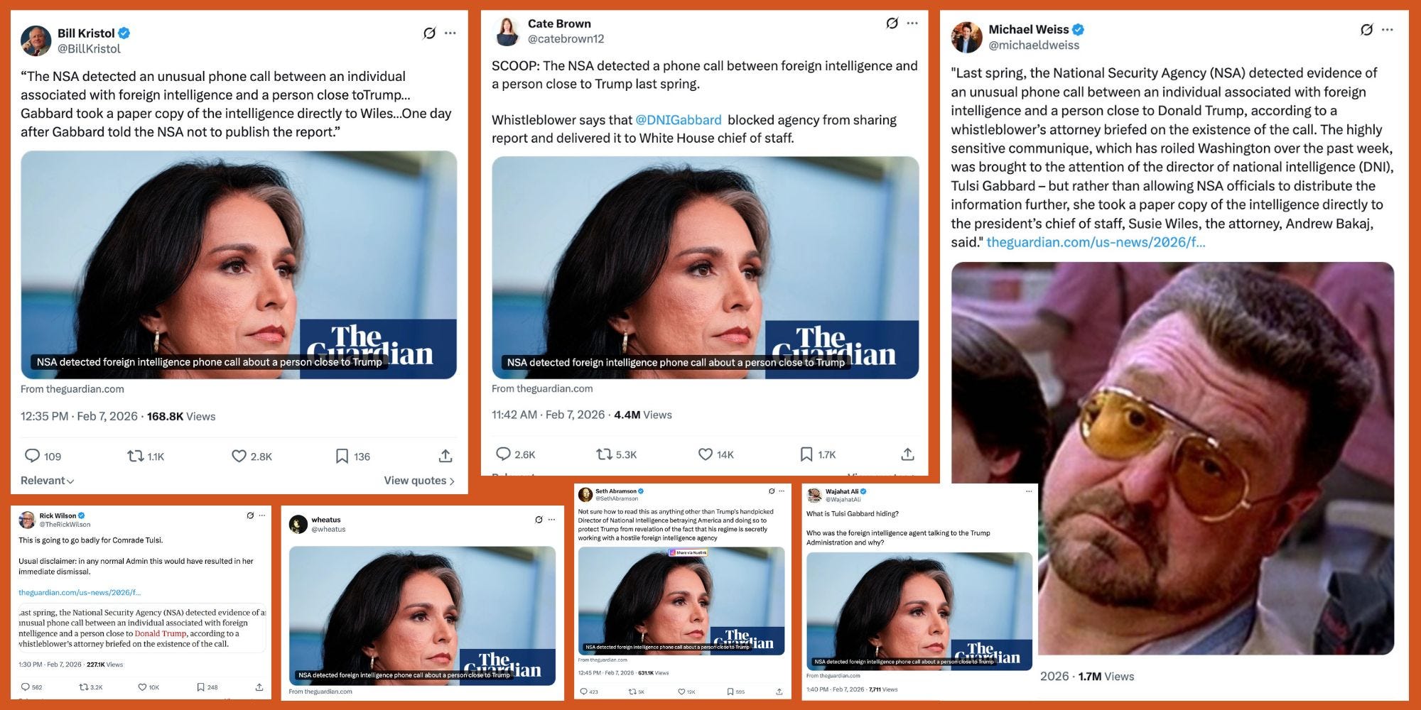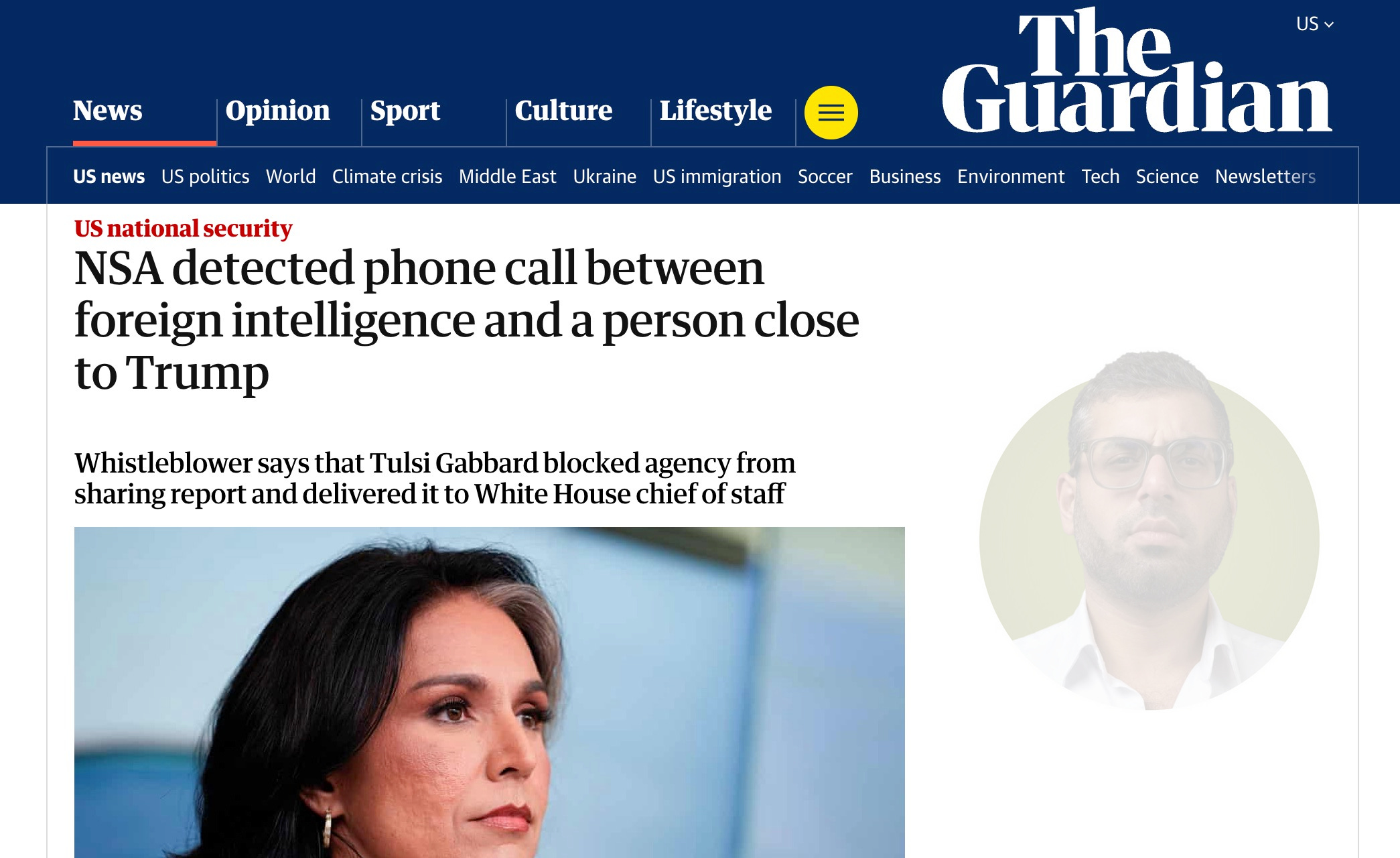 But as the aching “anti-racism industry” locomotive groaned back into a pathetic trundle, distracted editors at the Guardian – a 205-year-old progressive publication – were weighing a story that would have staggering implications for President Trump, his Director of National Intelligence, Tulsi Gabbard, his Chief of Staff Susie Wiles, and indeed his entire administration.