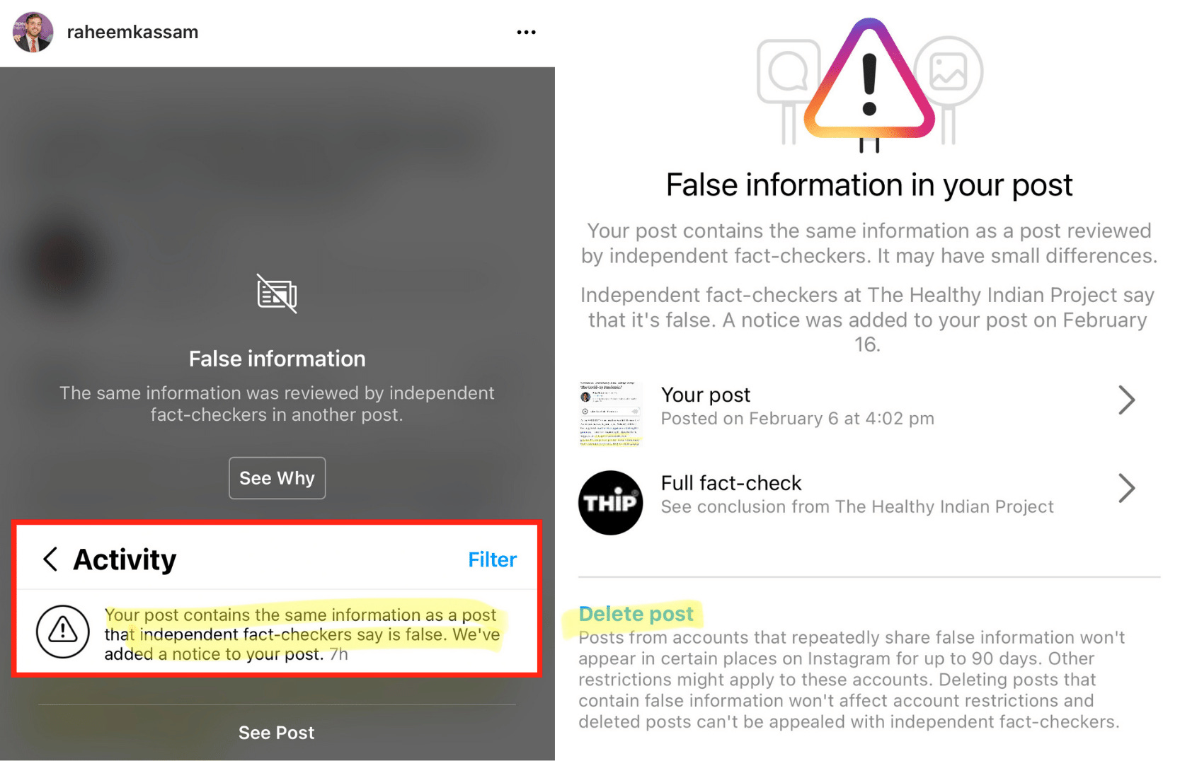 Last week Instagram notified me that a viral post I had published was "fact checked" by a group called ‘The Healthy Indian Project’. My mother is from Bombay, and I did lose 40lbs last year, but I didn’t think they had created an entire unit just for me. So, I decided to find out who this group is. My findings are bemusing.
